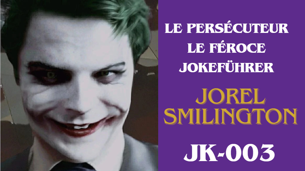Jorel Smilington est l'un des personnages les plus redoutés et impitoyables au sein de la Francemachine S.S., une organisation répressive dirigée par le Joker. En tant que JokeFührer, il occupe la fonction de chef suprême des forces de sécurité et des persécutions, orchestrant les opérations de soumission et de contrôle des ennemis idéologiques de Funland. Son rôle de JokeFührer fait de lui l'artisan principal de la terreur psychologique dans les camps de détention, où il utilise des techniques de manipulation extrême, telles que le Joke-X et le Smilex, pour briser les esprits des prisonniers. À la tête de la Francorage S.A., il supervise également des campagnes de propagande et de répression contre les groupes désignés comme ennemis de l'État Funlandien, notamment les wokistes (tels que les militants LGBT et Black Lives Matter) et les noëlistes (les membres de la communauté de JVC, opposants virulents au système). Sous sa direction, ces individus sont soumis à des persécutions systématiques, y compris des détentions arbitraires, des tortures physiques et psychologiques, et des expérimentations mentales pour les transformer en instruments dociles ou les éliminer totalement. Jorel Smilington incarne ainsi la froideur et la brutalité du régime Funlandien, où la moindre forme de rébellion est écrasée sans pitié.